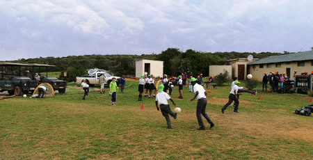 The one-day programme led by Dr. Jennifer Gush, director of the Amakhala Foundation and principal educator for Coaching for Conservation® based at Amakhala and her team; Tammy, Mo and Gould; involves learning about rhino, followed by a series of different soccer-related games in which the kids learn to defend and protect what is important to them. After all the activities, kids enjoy game drives, looking for rhinos and other animals.